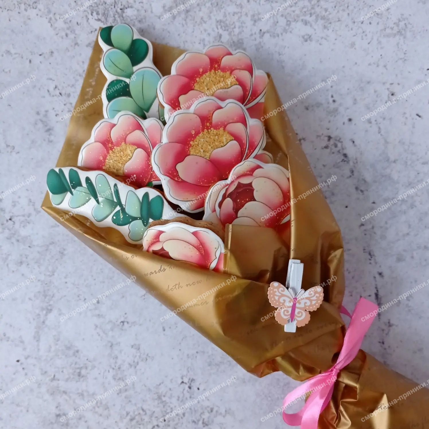 Пряничный букет пионов в нежной гамме