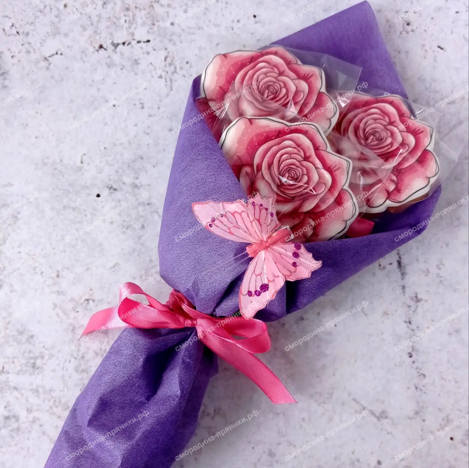 Небольшой букет из трех пряников в упаковке