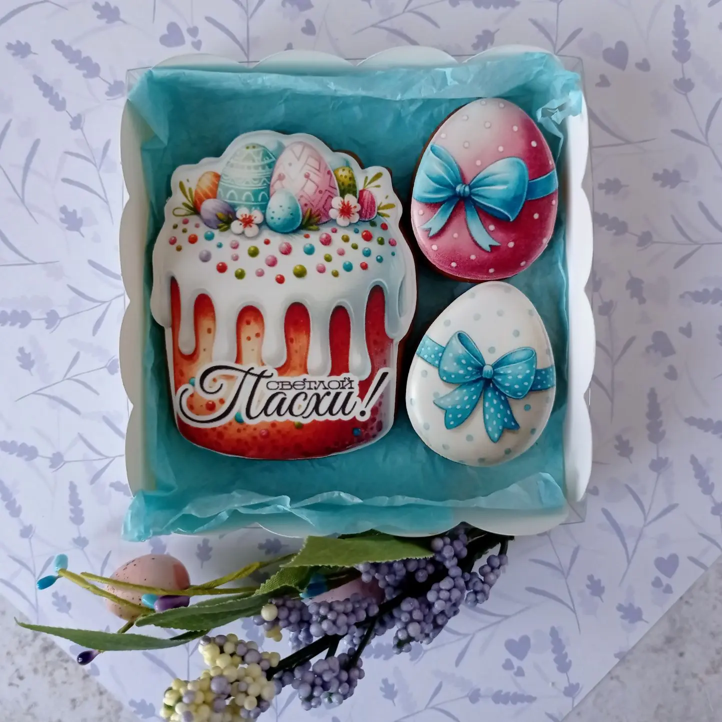 Набор кулич и яйца в коробке — Смородина